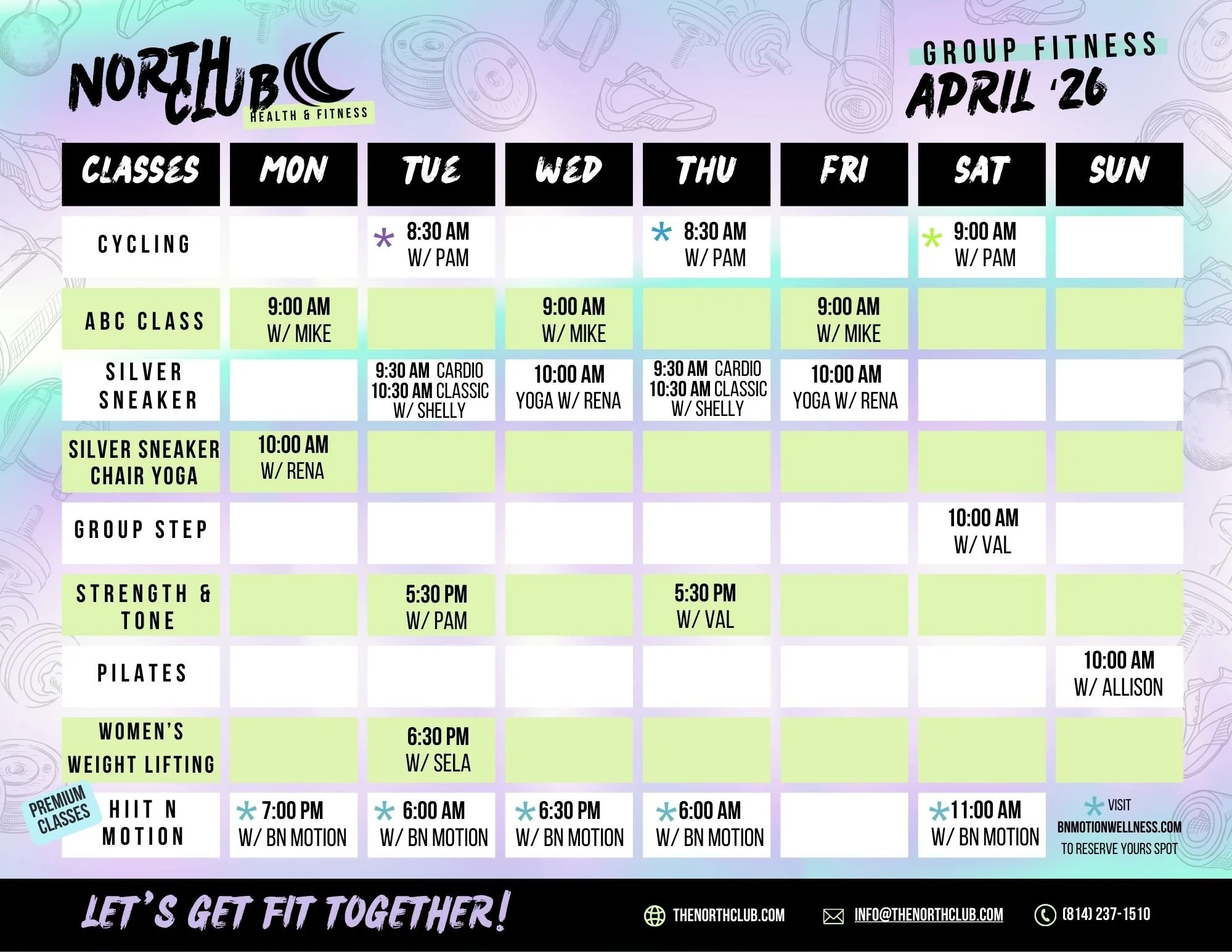 Follow us on Facebook and Instagram for class updates, cancellations and notifications